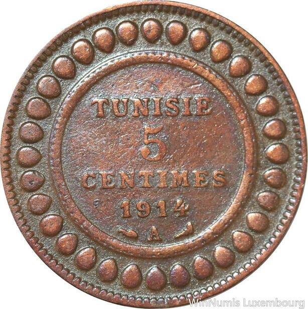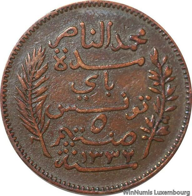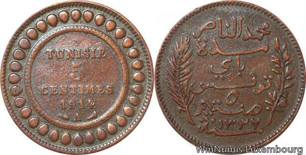 R8247 Tunisia 5 Centimes Muhammad al-Nasir Bey AH 1332 1914 A Paris > Make offer
