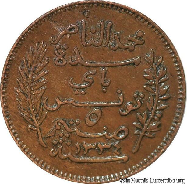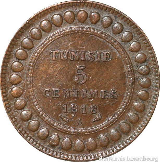 R8259 Tunisia 5 Centimes Muhammad al-Nasir Bey AH 1334 1916 A Paris AU >M Offer