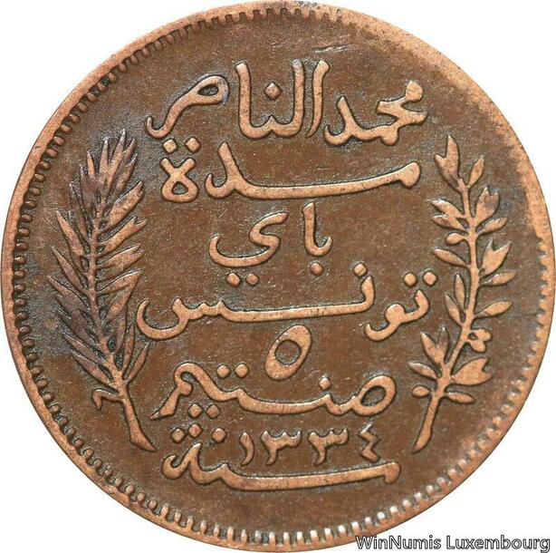 R8262 Tunisia 5 Centimes Muhammad al-Nasir Bey AH 1334 1916 A Paris > Make offer