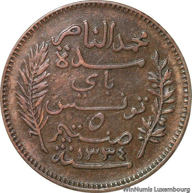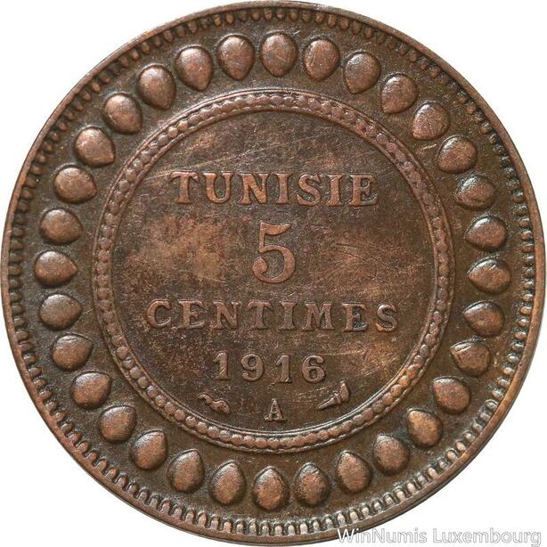 R8263 Tunisia 5 Centimes Muhammad al-Nasir Bey AH 1334 1916 A Paris > Make offer