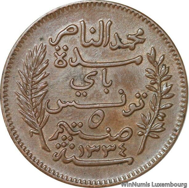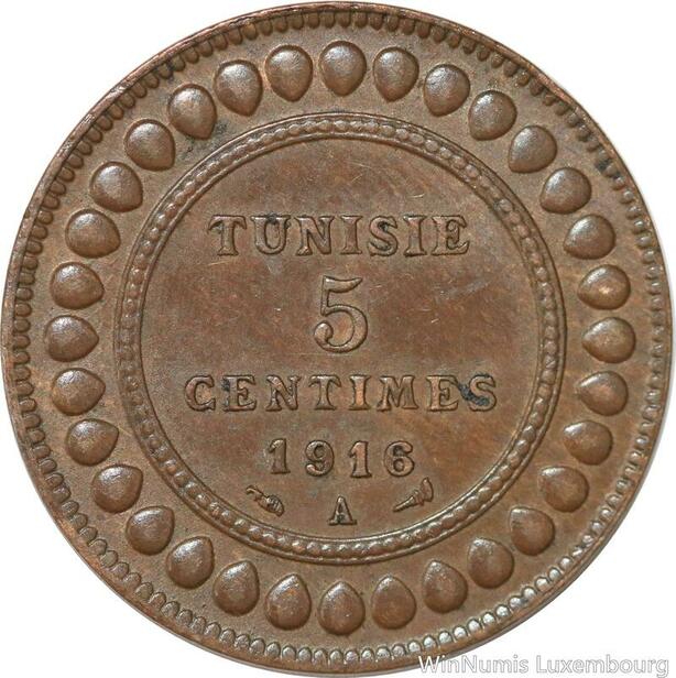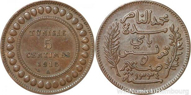 R8267 Tunisia 5 Centimes Muhammad al-Nasir Bey AH 1334 1916 A Paris AU >M Offer
