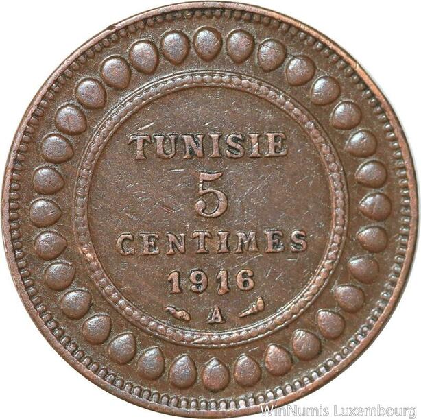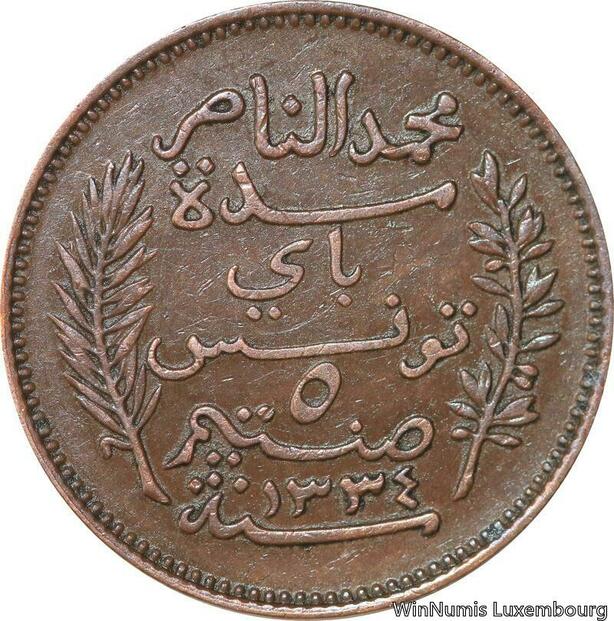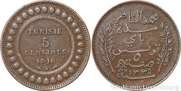 R8272 Tunisia 5 Centimes Muhammad al-Nasir Bey AH 1334 1916 A Paris > Make offer