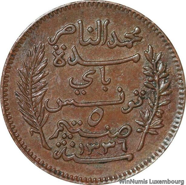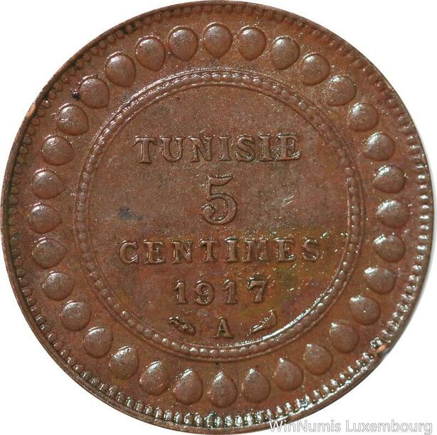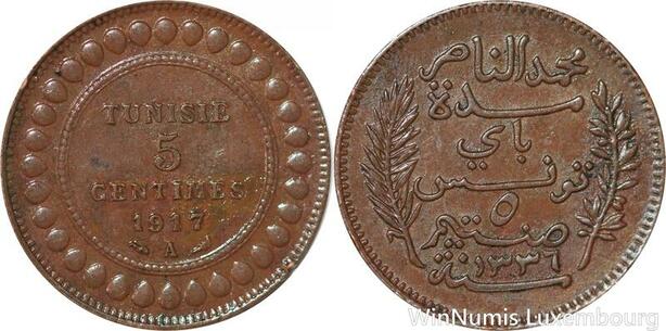 R8274 Tunisia 5 Centimes Muhammad al-Nasir Bey AH 1335 1917 A Paris AU >M Offer