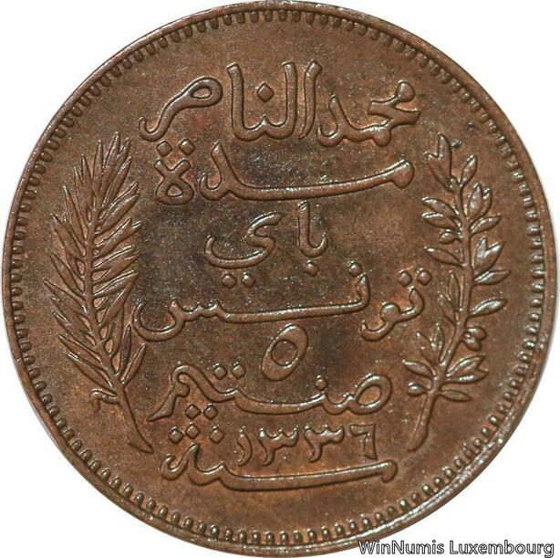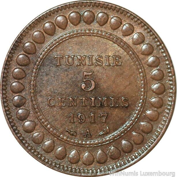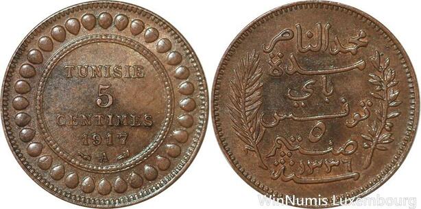 R8276 Tunisia 5 Centimes Muhammad al-Nasir Bey AH 1335 1917 A Paris AU >M Offer