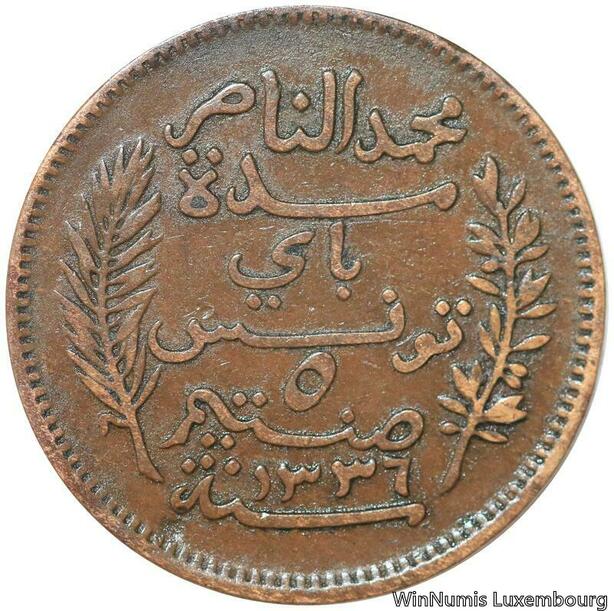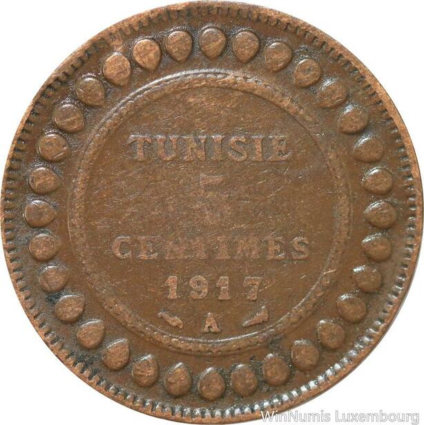 R8280 Tunisia 5 Centimes Muhammad al-Nasir Bey AH 1335 1917 A Paris > Make offer