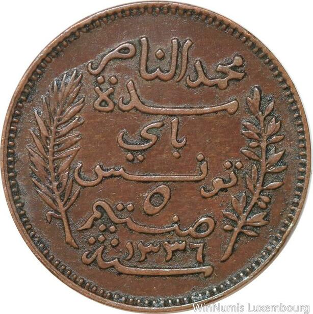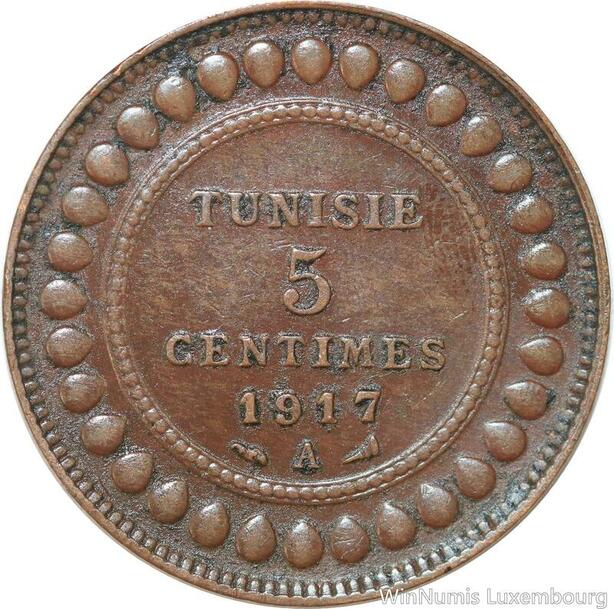 R8281 Tunisia 5 Centimes Muhammad al-Nasir Bey AH 1335 1917 A Paris > Make offer
