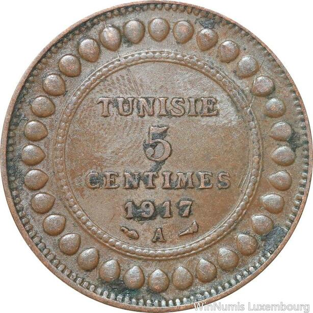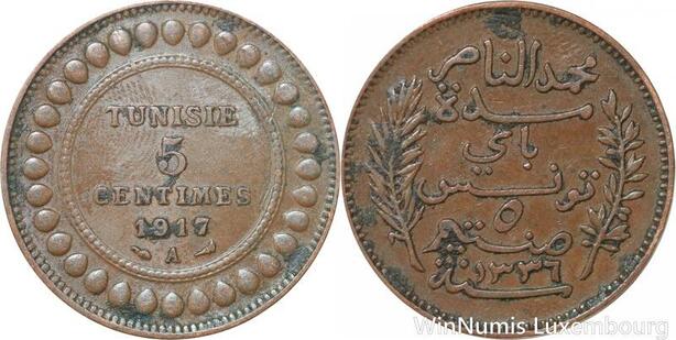 R8282 Tunisia 5 Centimes Muhammad al-Nasir Bey AH 1335 1917 A Paris > Make offer