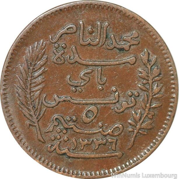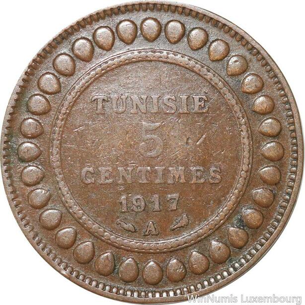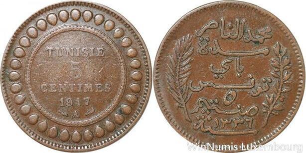 R8286 Tunisia 5 Centimes Muhammad al-Nasir Bey AH 1335 1917 A Paris > Make offer