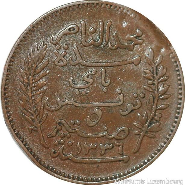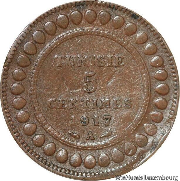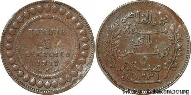R8290 Tunisia 5 Centimes Muhammad al-Nasir Bey AH 1335 1917 A Paris > Make offer