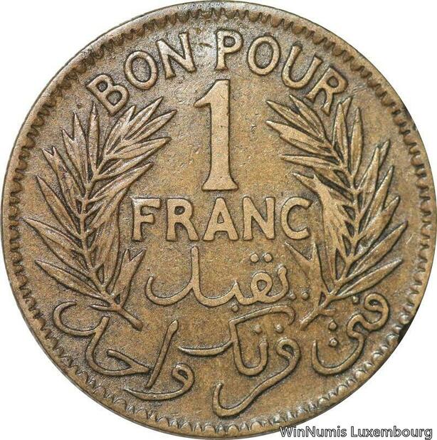 R8294 Tunisia Bon pour 1 Franc AH 1340 1921 A Paris -> Make offer