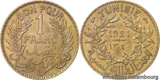 R8295 Tunisia Bon pour 1 Franc AH 1340 1921 A Paris -> Make offer