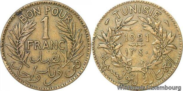 R8299 Tunisia Bon pour 1 Franc AH 1340 1921 A Paris -> Make offer