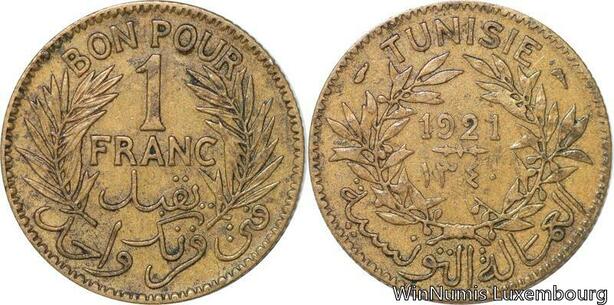 R8301 Tunisia Bon pour 1 Franc AH 1340 1921 A Paris -> Make offer