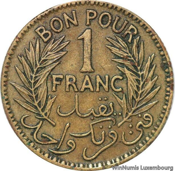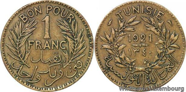 R8302 Tunisia Bon pour 1 Franc AH 1340 1921 A Paris -> Make offer