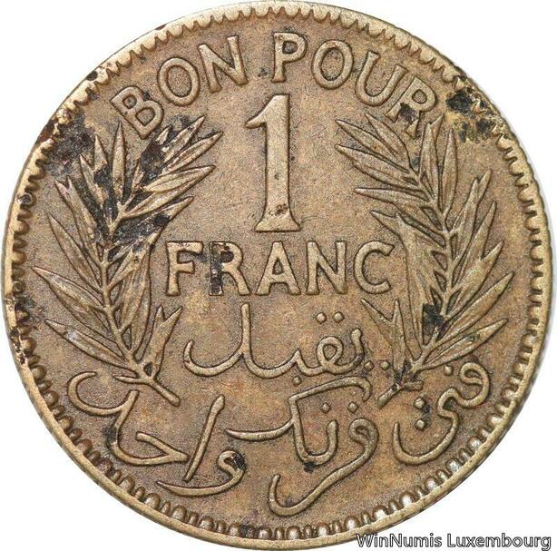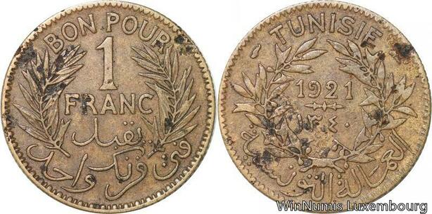 R8303 Tunisia Bon pour 1 Franc AH 1340 1921 A Paris -> Make offer