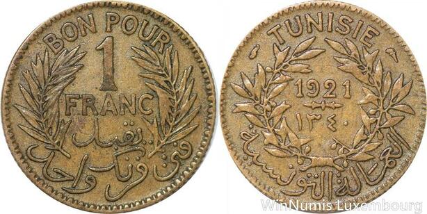R8309 Tunisia Bon pour 1 Franc AH 1340 1921 A Paris -> Make offer