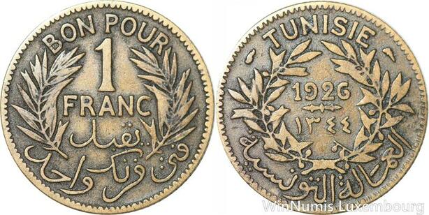 R8313 Tunisia Bon pour 1 Franc AH 1345 1926 A Paris -> Make offer