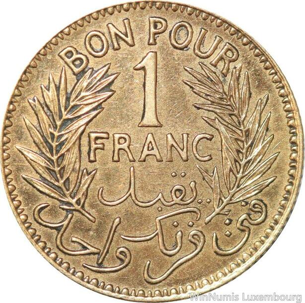 R8319 Tunisia Bon pour 1 Franc AH 1345 1926 A Paris -> Make offer