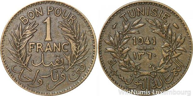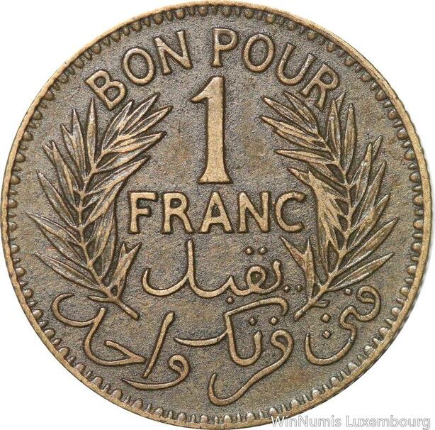 R8320 Tunisia Bon pour 1 Franc AH 1345 1926 A Paris -> Make offer