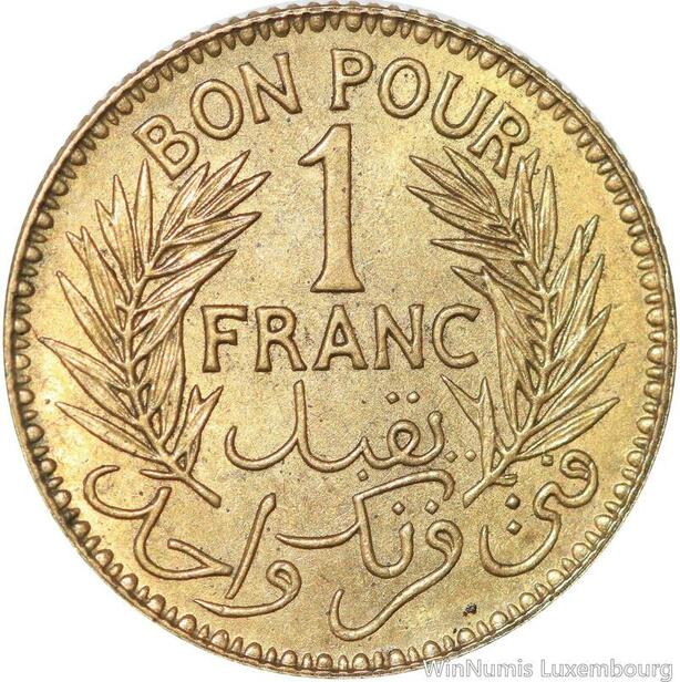 R8321 Tunisia Bon pour 1 Franc AH 1345 1926 A Paris -> Make offer