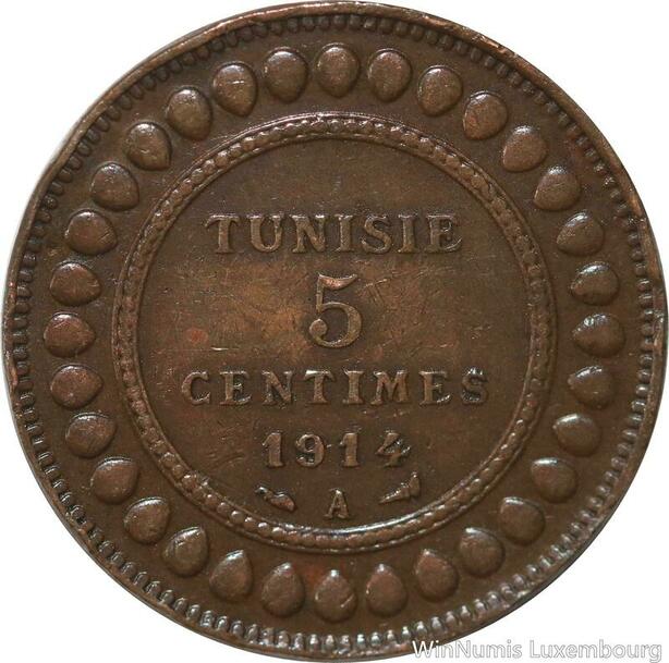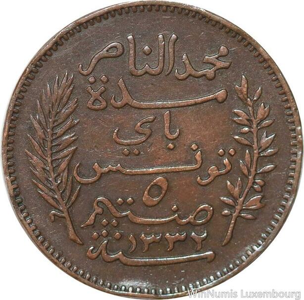 R8325 Tunisia 5 Centimes Muhammad al-Nasir Bey AH 1332 1914 A Paris > Make offer
