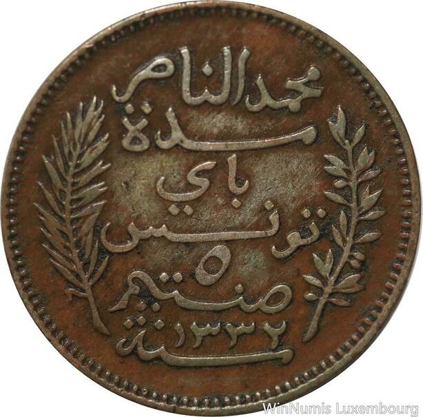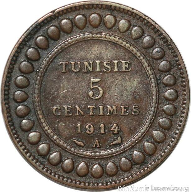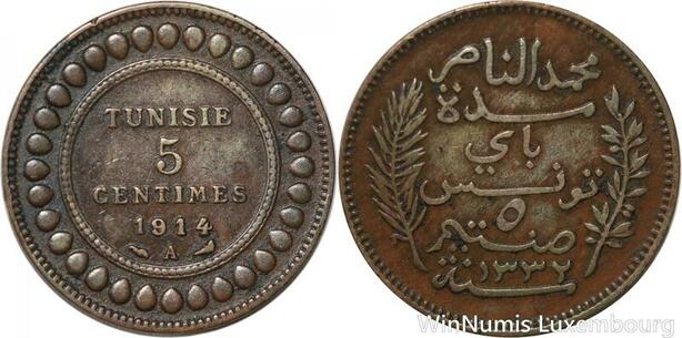 R8326 Tunisia 5 Centimes Muhammad al-Nasir Bey AH 1332 1914 A Paris > Make offer