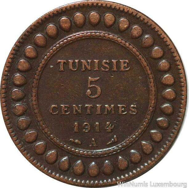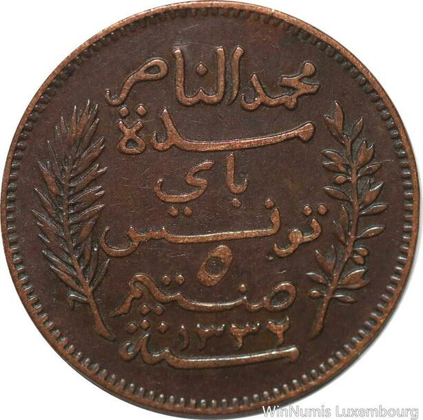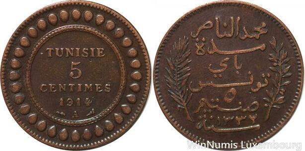 R8328 Tunisia 5 Centimes Muhammad al-Nasir Bey AH 1332 1914 A Paris > Make offer