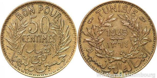 R8372 Tunisia Bon pour 50 Centimes AH 1364 1945 A Paris -> Make offer