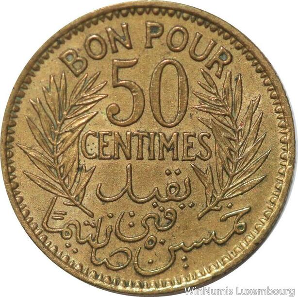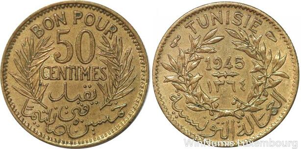 R8373 Tunisia Bon pour 50 Centimes AH 1364 1945 A Paris -> Make offer