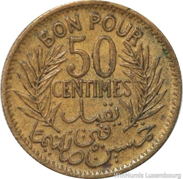 R8374 Tunisia Bon pour 50 Centimes AH 1364 1945 A Paris -> Make offer