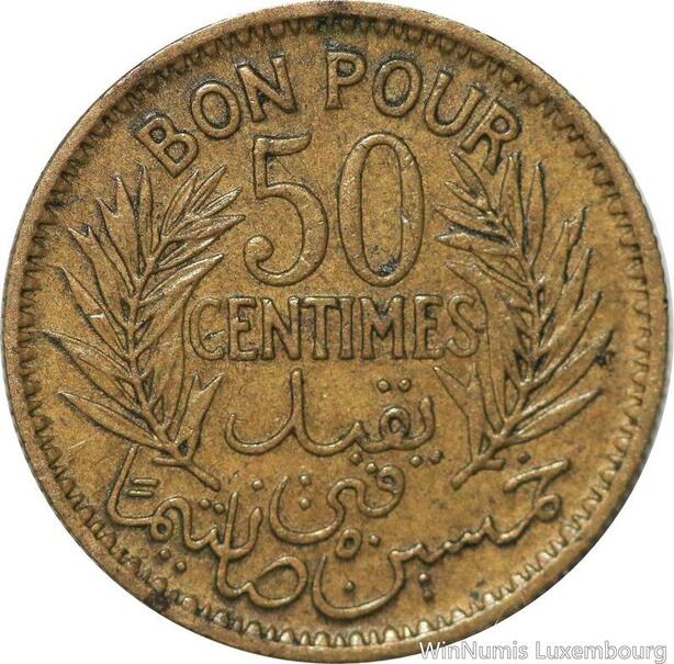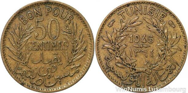 R8375 Tunisia Bon pour 50 Centimes AH 1364 1945 A Paris -> Make offer
