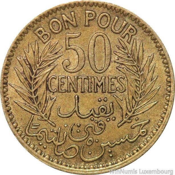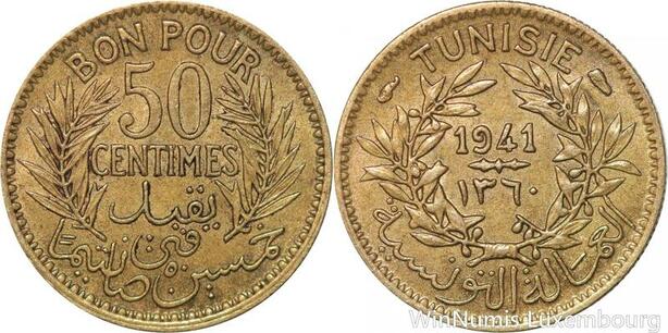 R8379 Tunisia Bon pour 50 Centimes AH 1360 1941 A Paris AU -> Make offer