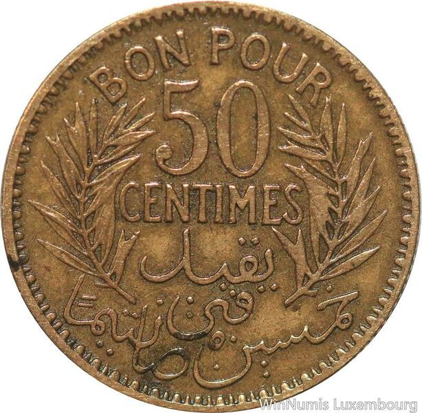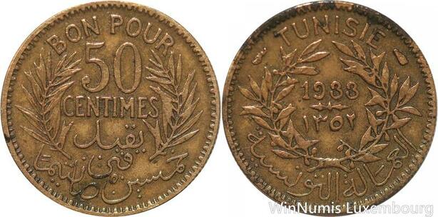 R8389 Tunisia Bon pour 50 Centimes AH 1352 1933 A Paris -> Make offer