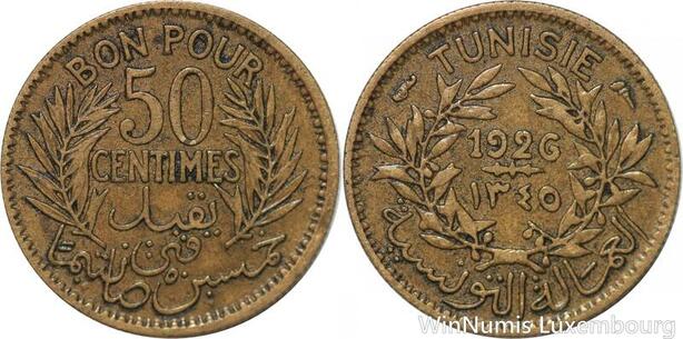 R8391 Tunisia Bon pour 50 Centimes AH 1345 1926 A Paris -> Make offer