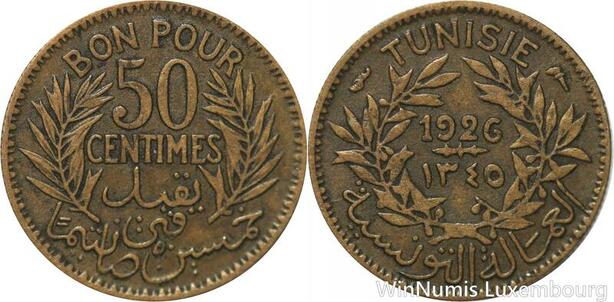 R8395 Tunisia Bon pour 50 Centimes AH 1345 1926 A Paris -> Make offer