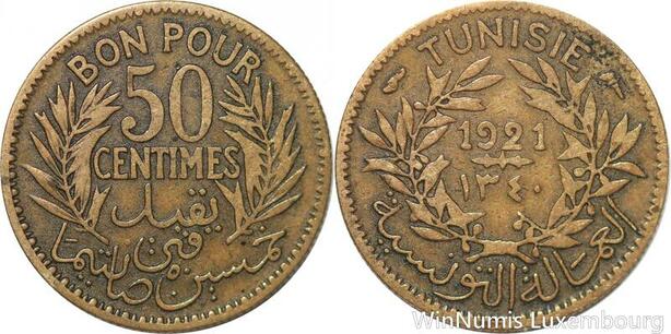 R8399 Tunisia Bon pour 50 Centimes AH 1340 1921 A Paris -> Make offer