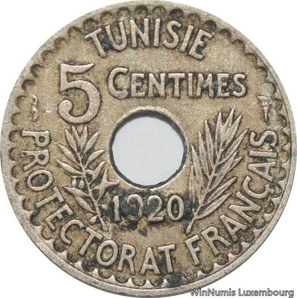 R8401 Tunisia 5 Centimes Muhammad al-Nasir Bey AH 1338 1920 Paris -> Make offer