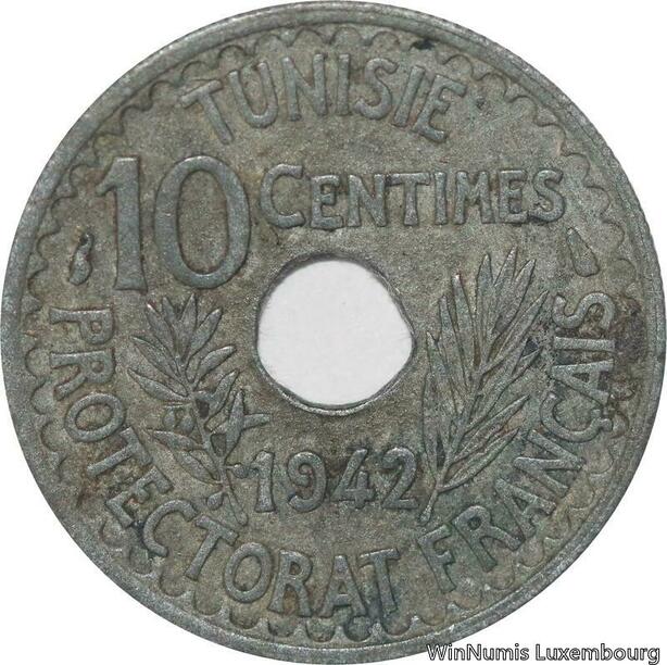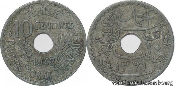 R8405 Tunisia 10 Centimes Muhammad al-Nasir Bey AH 1361 1942 Paris -> Make offer