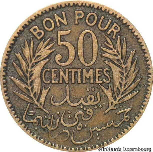 R8426 Tunisia 50 Centimes French Colonies AH 1340 1921 A Paris -> Make offer