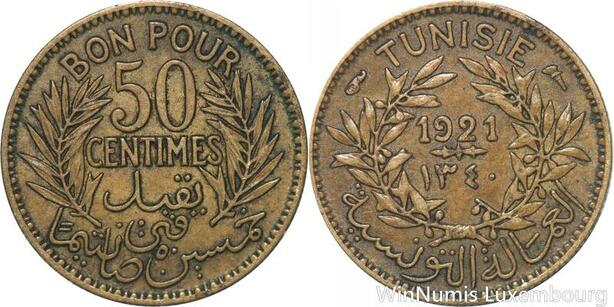 R8427 Tunisia 50 Centimes French Colonies AH 1340 1921 A Paris -> Make offer