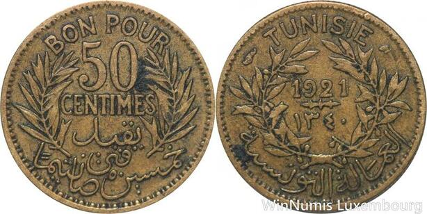 R8428 Tunisia 50 Centimes French Colonies AH 1340 1921 A Paris -> Make offer