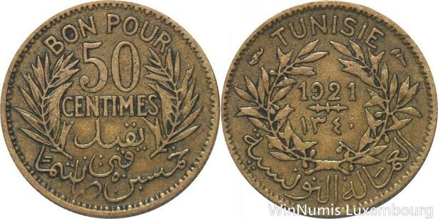 R8429 Tunisia 50 Centimes French Colonies AH 1340 1921 A Paris -> Make offer