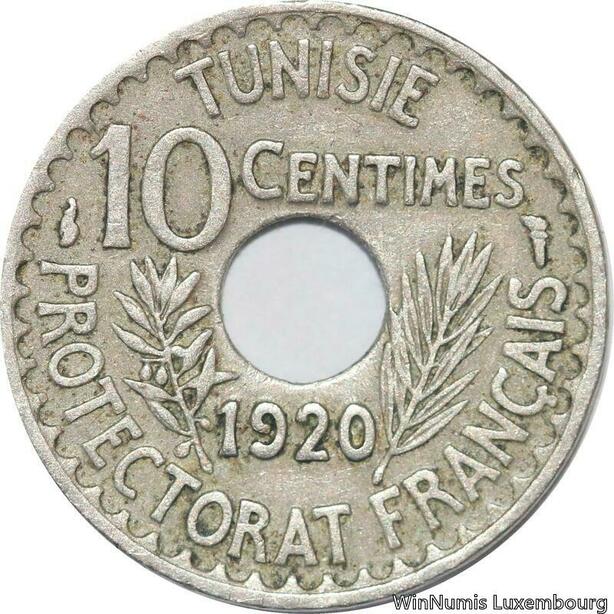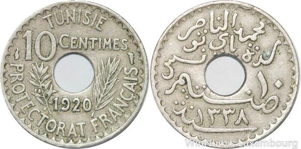 R8431 Tunisia 10 Centimes Muhammad al-Nasir Bey AH 1338 1920 Paris