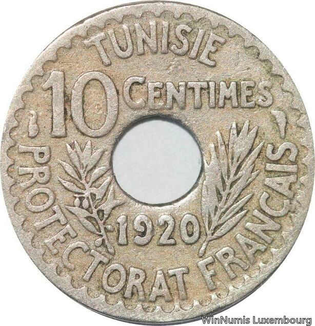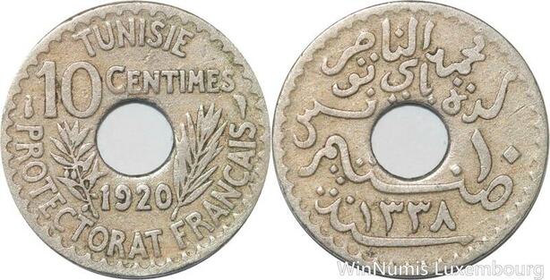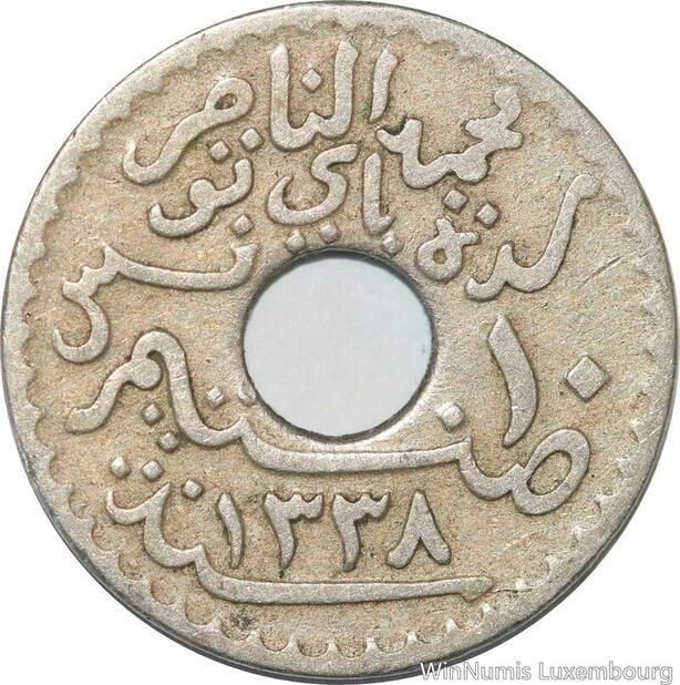 R8433 Tunisia 10 Centimes Muhammad al-Nasir Bey AH 1338 1920 Paris