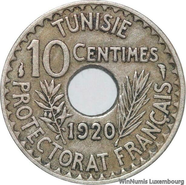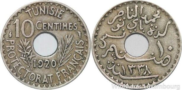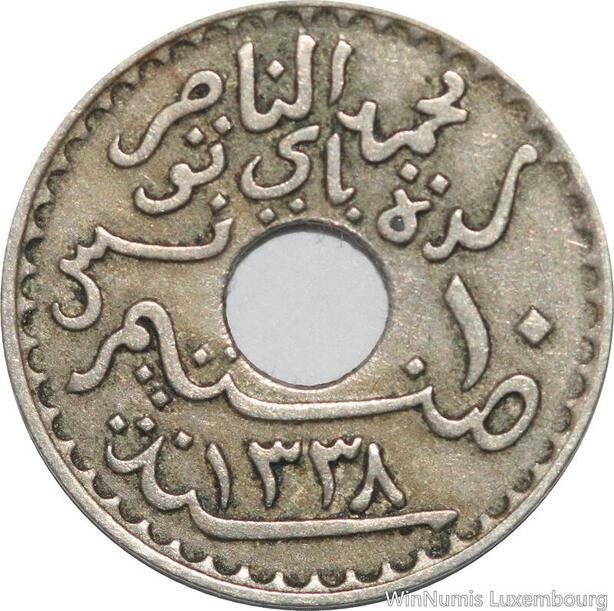 R8435 Tunisia 10 Centimes Muhammad al-Nasir Bey AH 1338 1920 Paris