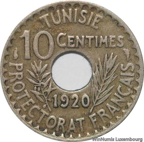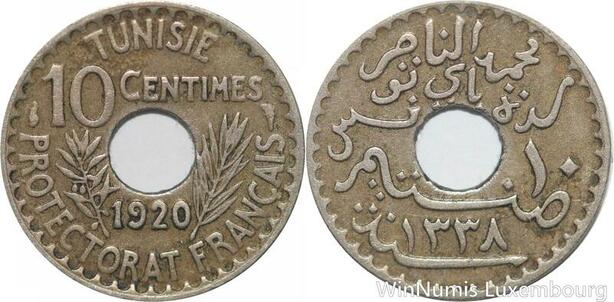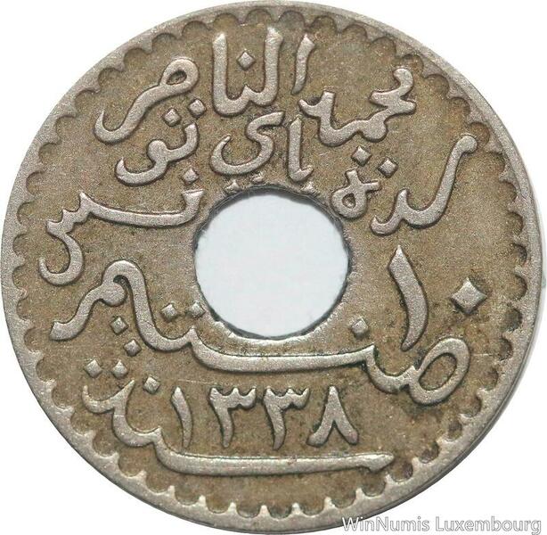 R8436 Tunisia 10 Centimes Muhammad al-Nasir Bey AH 1338 1920 Paris