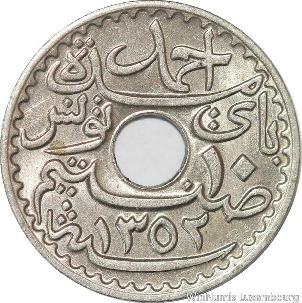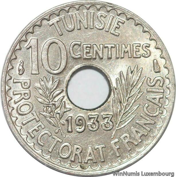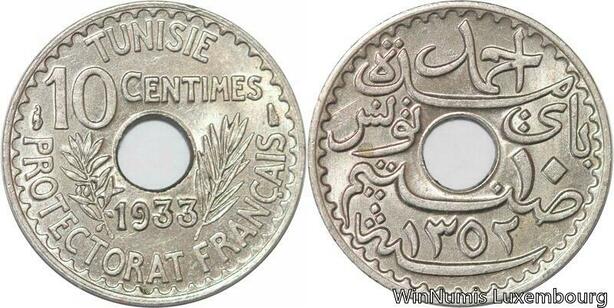 R8445 Tunisia 10 Centimes Ahmad Pasha Bey AH 1352 1933 Paris UNC