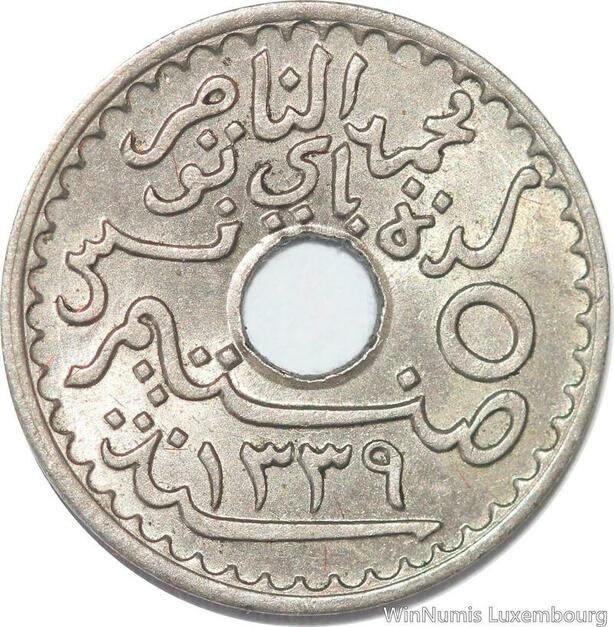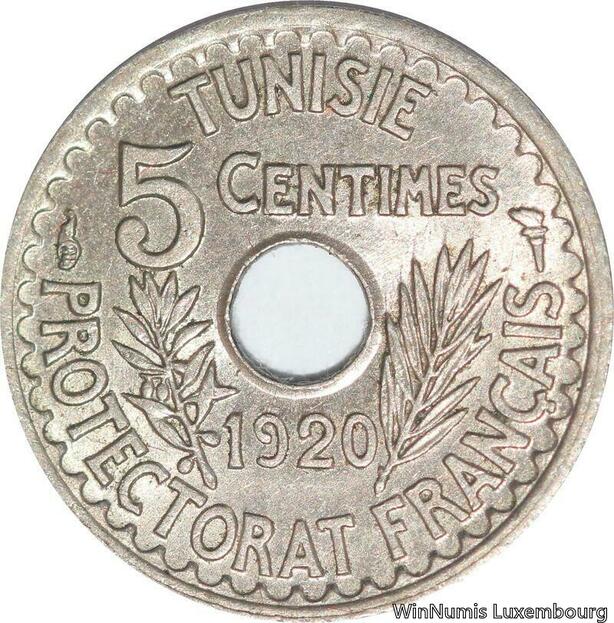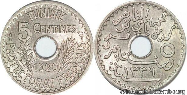 R8447 Tunisia 5 Centimes Muhammad al-Nasir Bey AH 1339 1920 Paris UNC