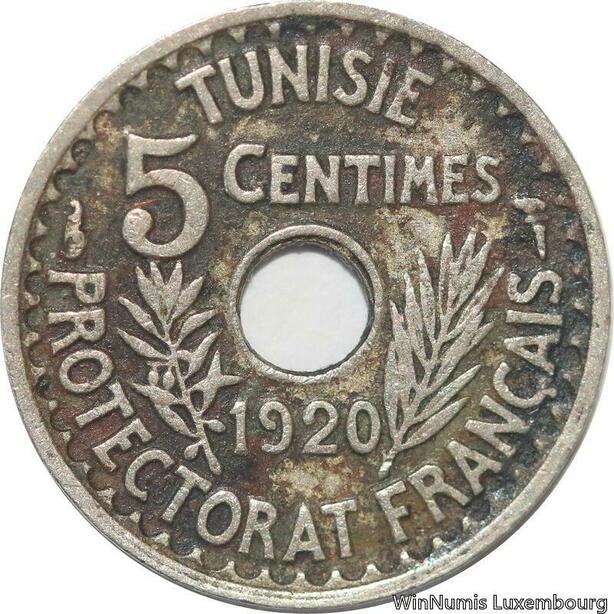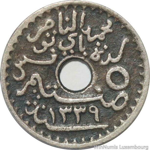 R8449 Tunisia 5 Centimes Muhammad al-Nasir Bey AH 1339 1920 Paris