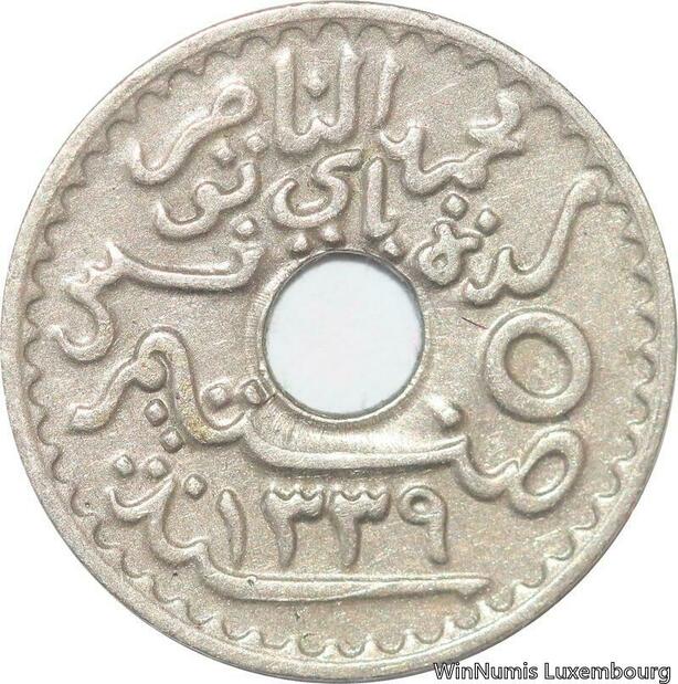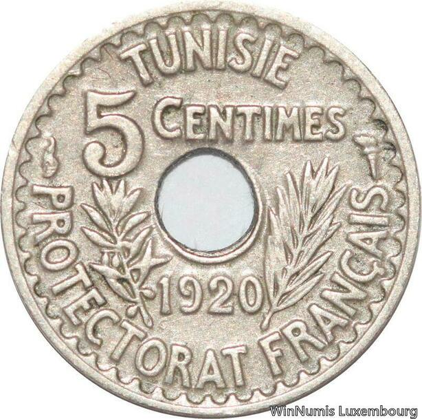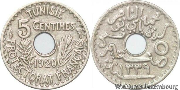 R8450 Tunisia 5 Centimes Muhammad al-Nasir Bey AH 1339 1920 Paris